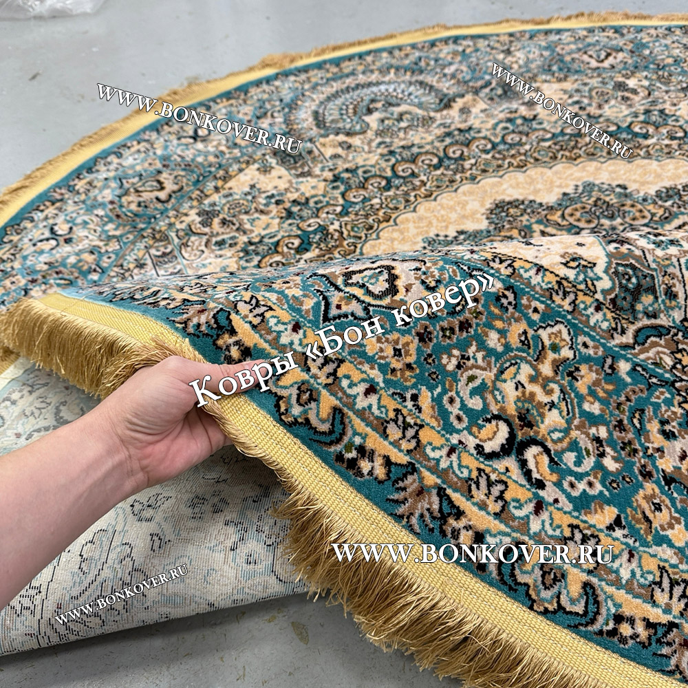 Восточный Ковер Для Гостиной Медальон Дизайн 28747 круг станет привлекательным дополнением интерьера, оформленного в современном или классическом стиле. Мягкое, но прочное, ковровое изделие обеспечивает тепло- и шумоизоляцию, отличается длительным сроком эксплуатации, надежностью, экологичностью и высокой износостойкостью, является отличной защитой от повышенной влажности в помещении и утеплителем для холодного пола. Благодаря качеству материалов, ковер не деформируется, сохраняет форму под тяжестью предметов мебели. За его поверхностью легко ухаживать.